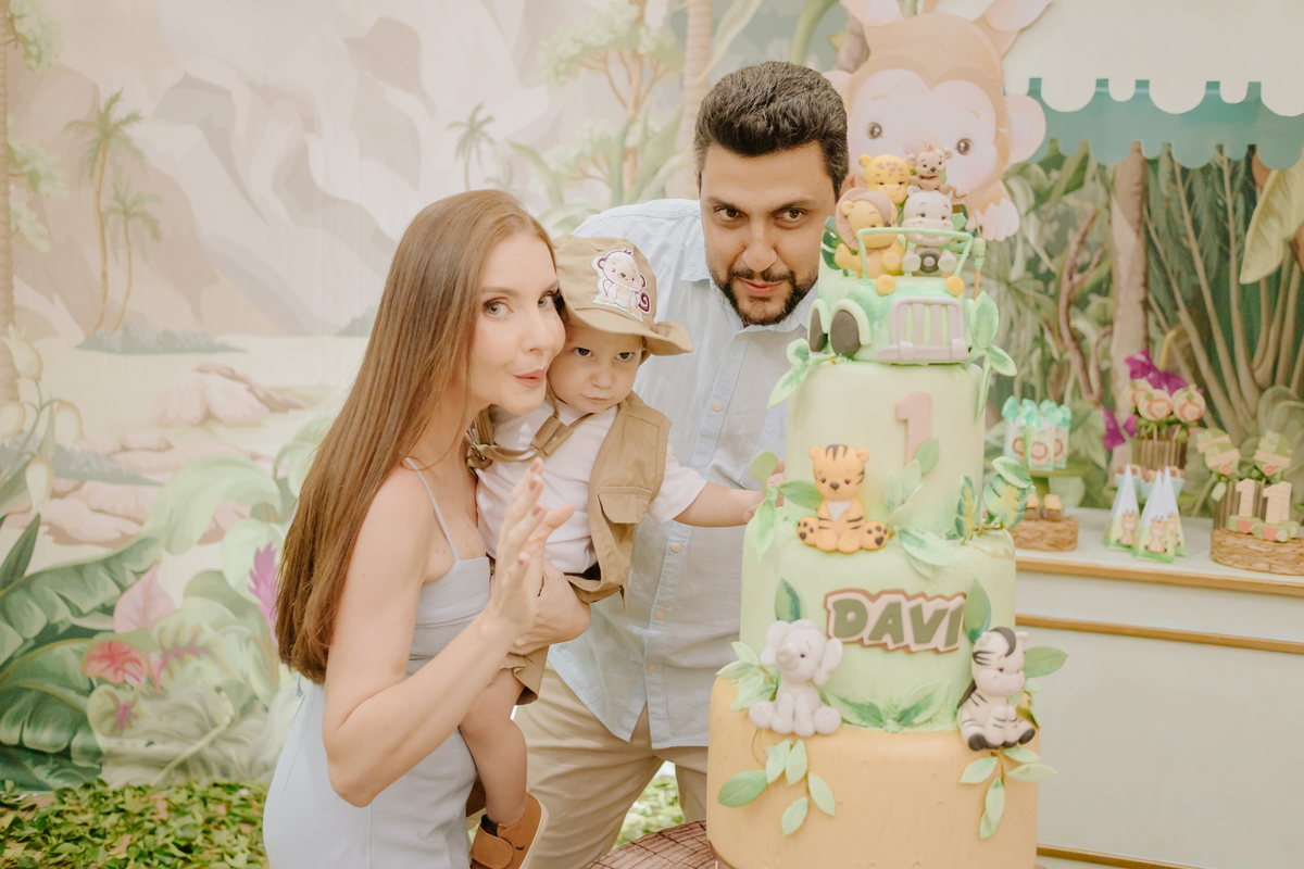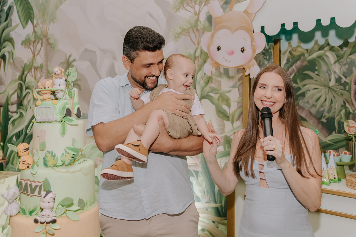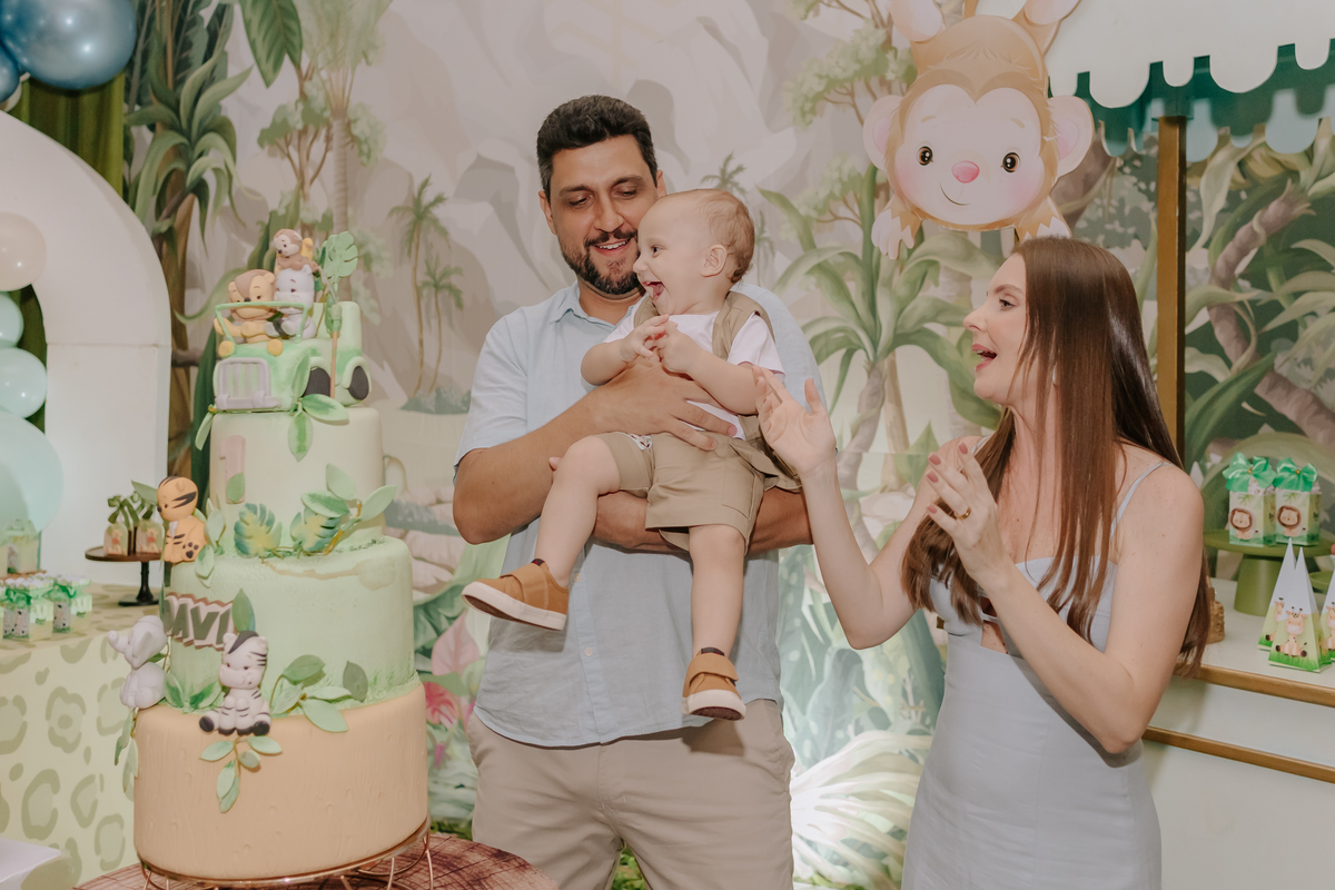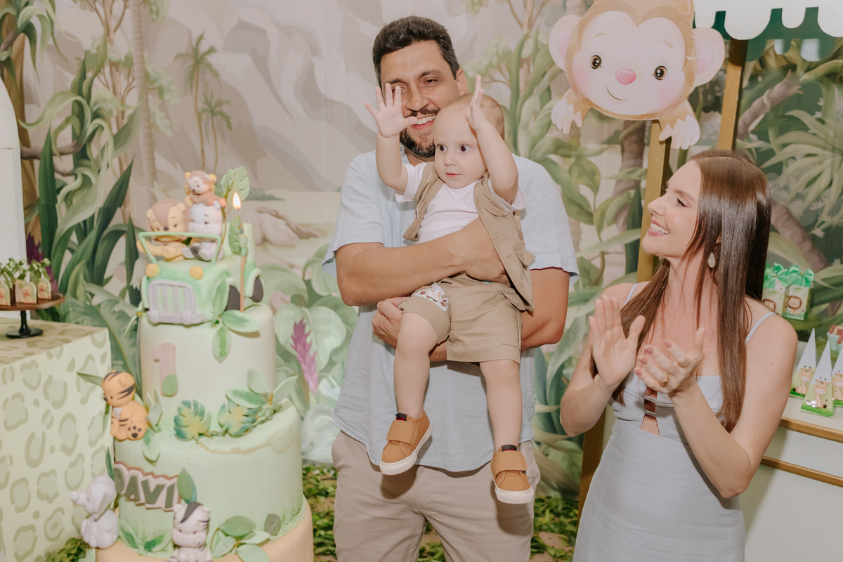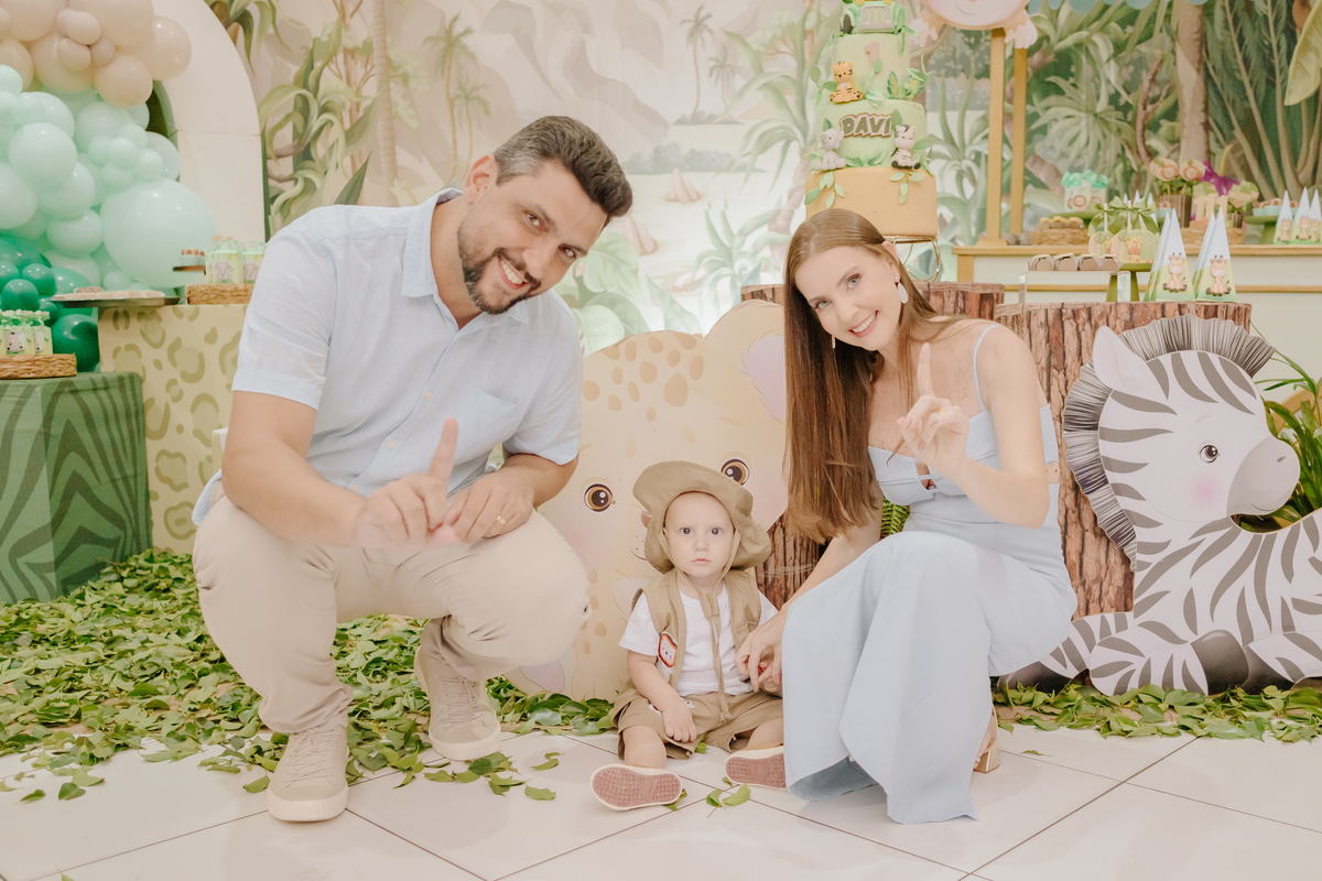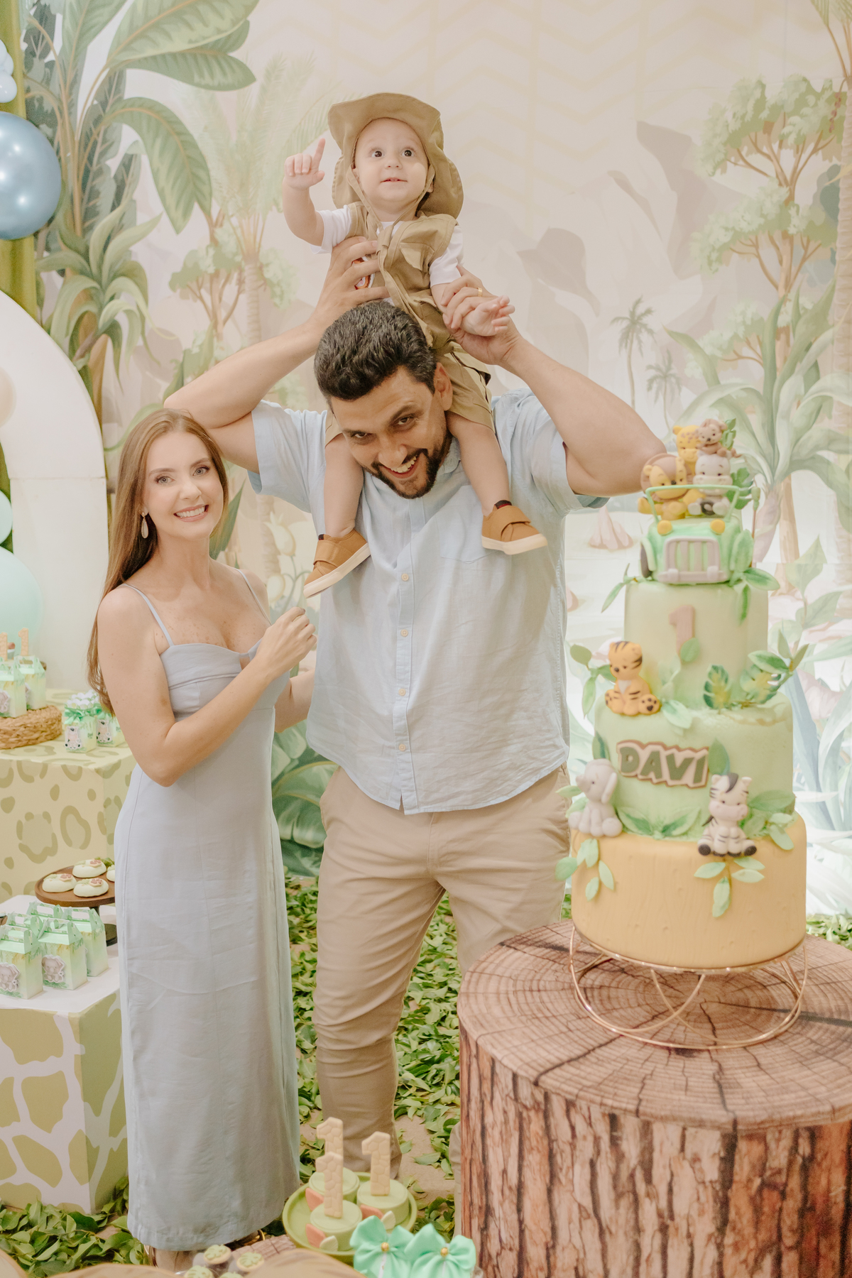 Davi completou um ano de descobertas — e nada mais justo do que um safari para celebrar! Entre tons suaves de verde, olhos curiosos e abraços apertados, papai e mamãe comemoraram o primeiro grande ciclo dessa jornada incrível. Um ano de primeiras vezes e de um amor que só cresce.